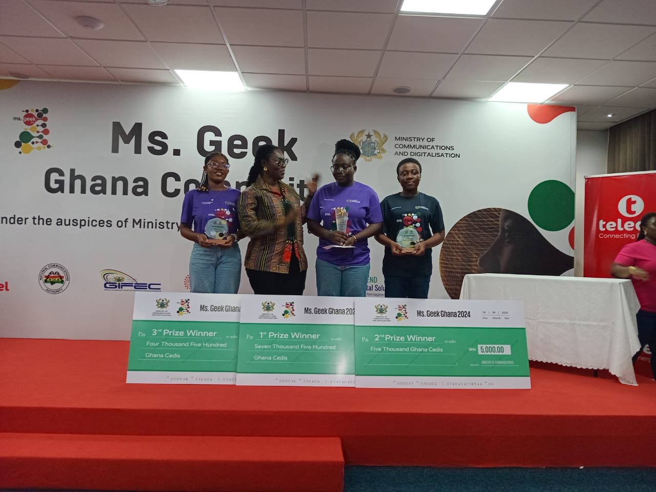 Bottozah Biana Bubune was announced as 2024 Ms. Geek Ghana Winner. She expressed gratitude to the Minister of Communications and Digitalisation, the Ministry itself, and the other contestants.